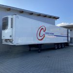 - 10 Kühl-Thermo Auflieger mit Rohrbahnen für hängende Ware wie Frischfleisch, jeder mit 33 Europaletten Stellplätzen Und Temperatur Möglichkeiten von -28 Grad bis zu + 28 Grad
